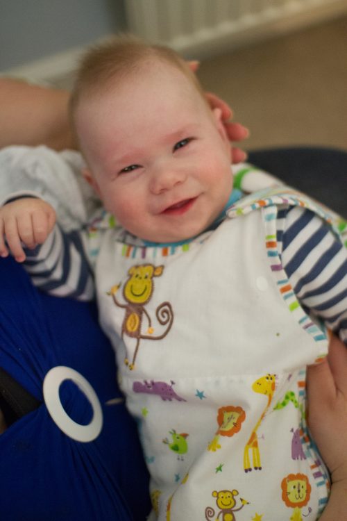 He woke up hungry and crying. But the moment you go into his room, it’s all sleepy giggles and smiles.