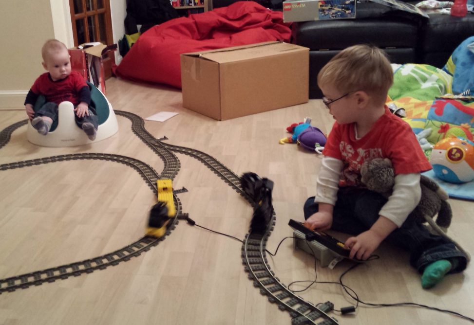 CJ knew exactly what he wanted to do when S2 arrived home tonight – he ran straight to the lego train saying “play with train Daddy”.