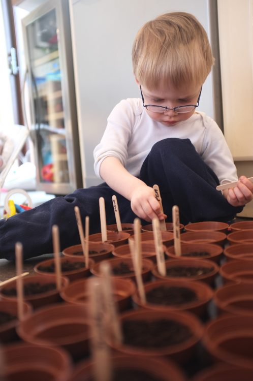 CJ had a blast filling the pots with dirt and then putting the seeds in and pressing them down.