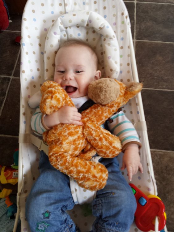LJ is starting to love his Wellington. He is beginning to play with him, well mainly chew on him at this stage. But there is usually plenty of smiles when they are together.