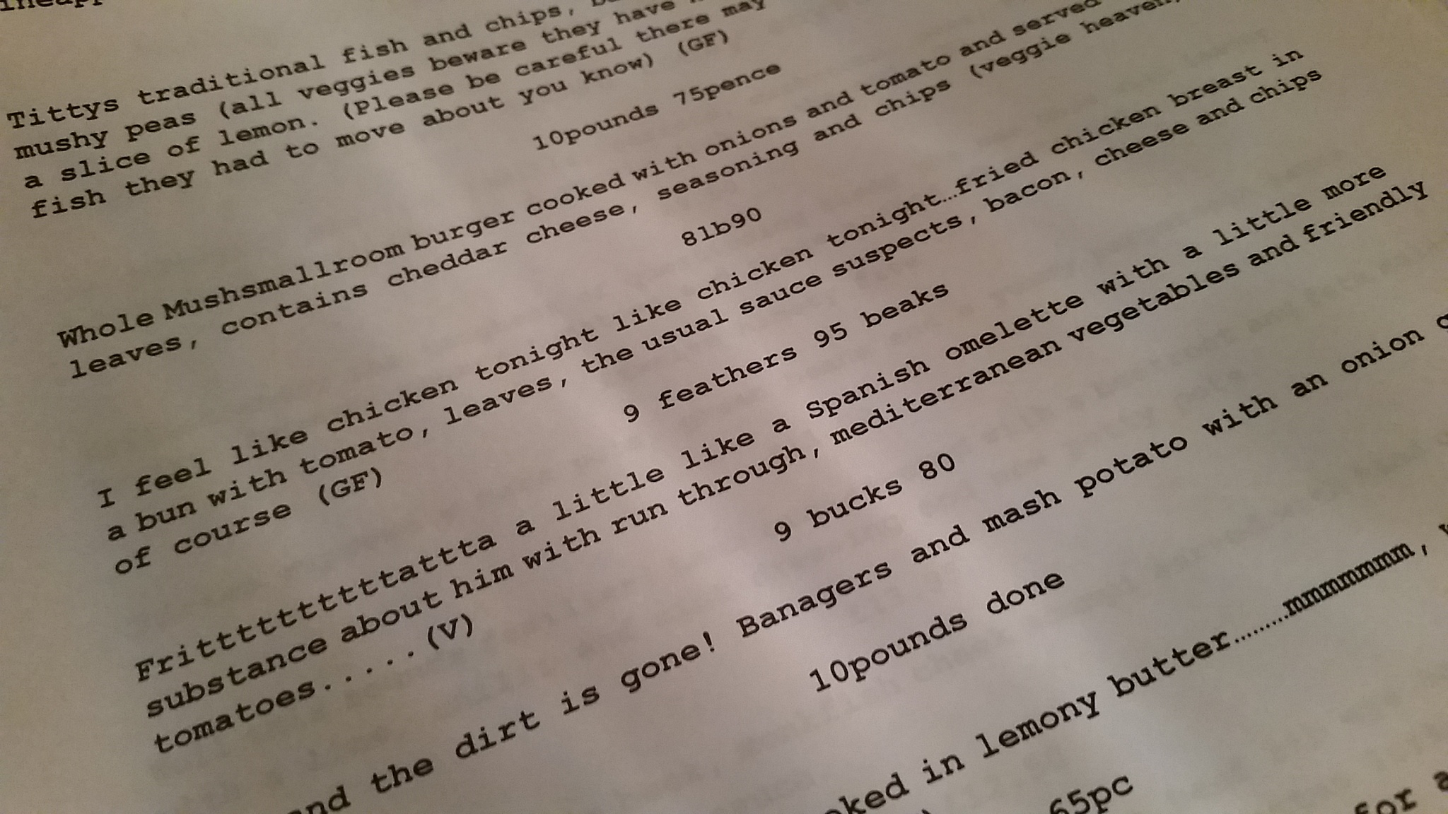 A trip to the new Butterly and Pig in Shawlands had this crazy menu, backed up by good service and lovely food.
