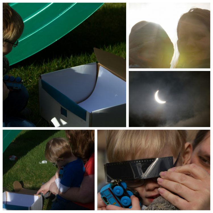Today we witnessed a very special event – a solar eclipse! S2 made a viewing box for CJ – so he could enjoy it, without risking him looking directly at it. He was fascinated by the small moon shape that appeared in the the box.