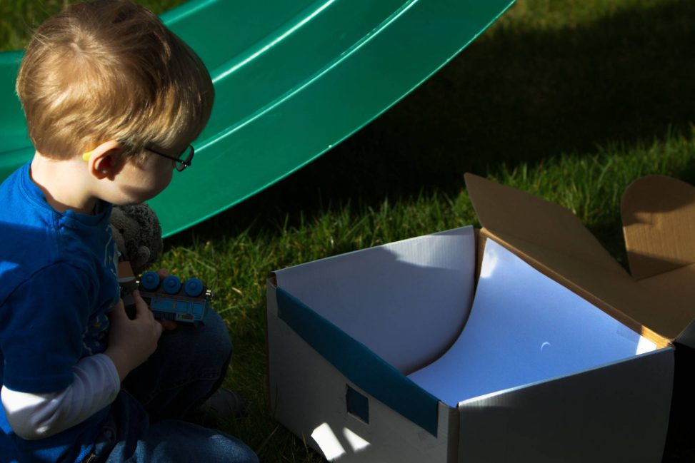 He was fascinated by the little picture in the box. When we asked him what it was he kept saying ‘Moon!’. Even once S1 had explained it was the sun with the moon in front he still kept calling it Moon. Very cute.