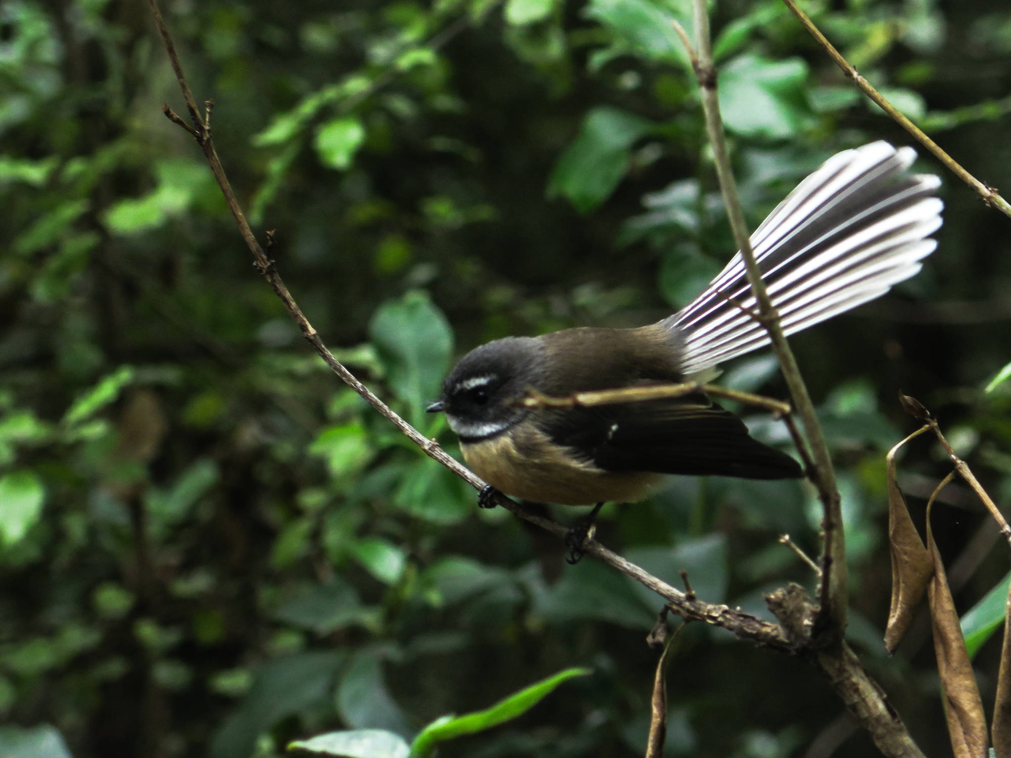Took molly for a walk through Ernle Clarke reserve and I could hear the fantails twittering long before I saw them. As we walked along the path there were 6 or 8 of them flitting about, so there must been some tasty insects in the trees.