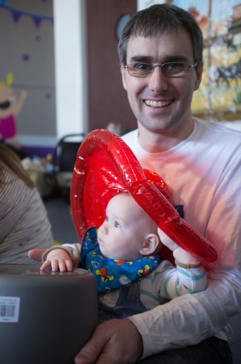 One good thing about S2 not working at the moment is that he can get more involved with the kids weekly program – today is baby sensory.