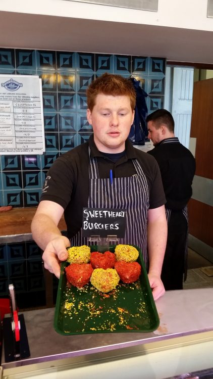 The local butcher was on the TV this morning with heart shaped burgers, and when we walked in we had to buy the last 6 that were left. Delicious.