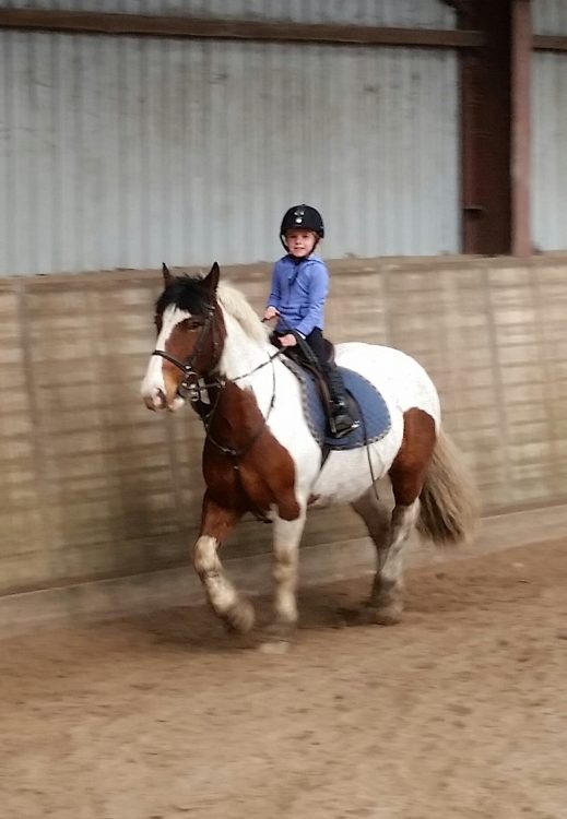 A very small I, on a very large horse (comparitively). Hazleden Equestrian center, and Rob the riding coach are great.