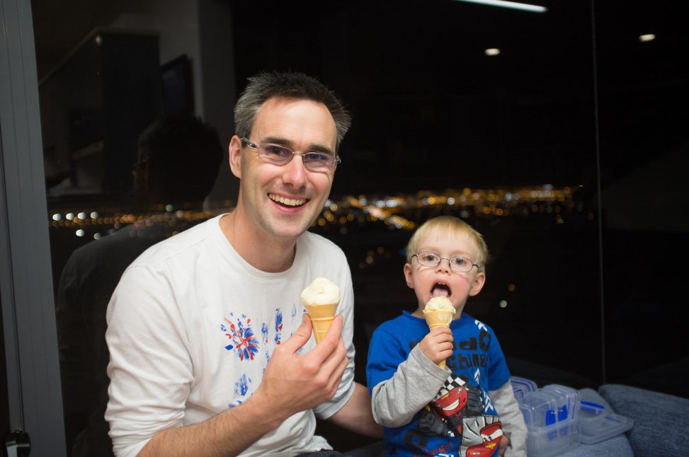 CJ will have the hang of being a kiwi kid in no time at thsi rate. It’s winter and dark when I get home… only to walk in to an offer of Ice Cream.