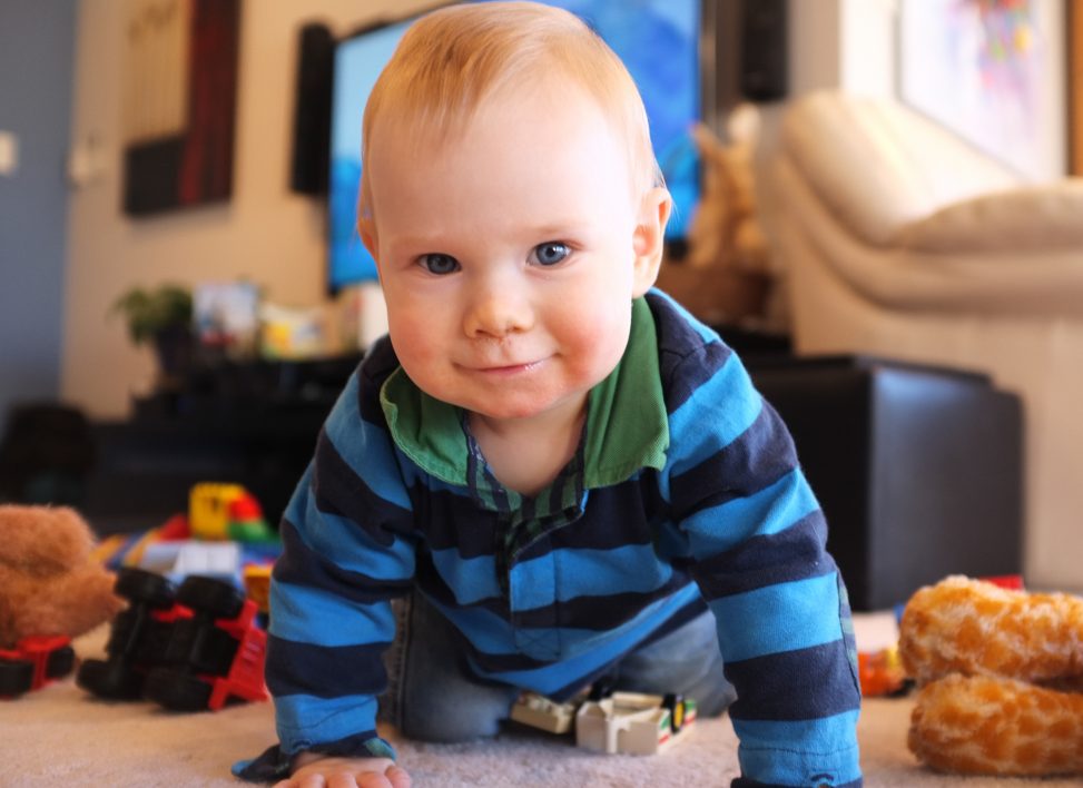 He’s crawling, flat out. He’s troublesome, he sees something he wants and nothing will stop him.