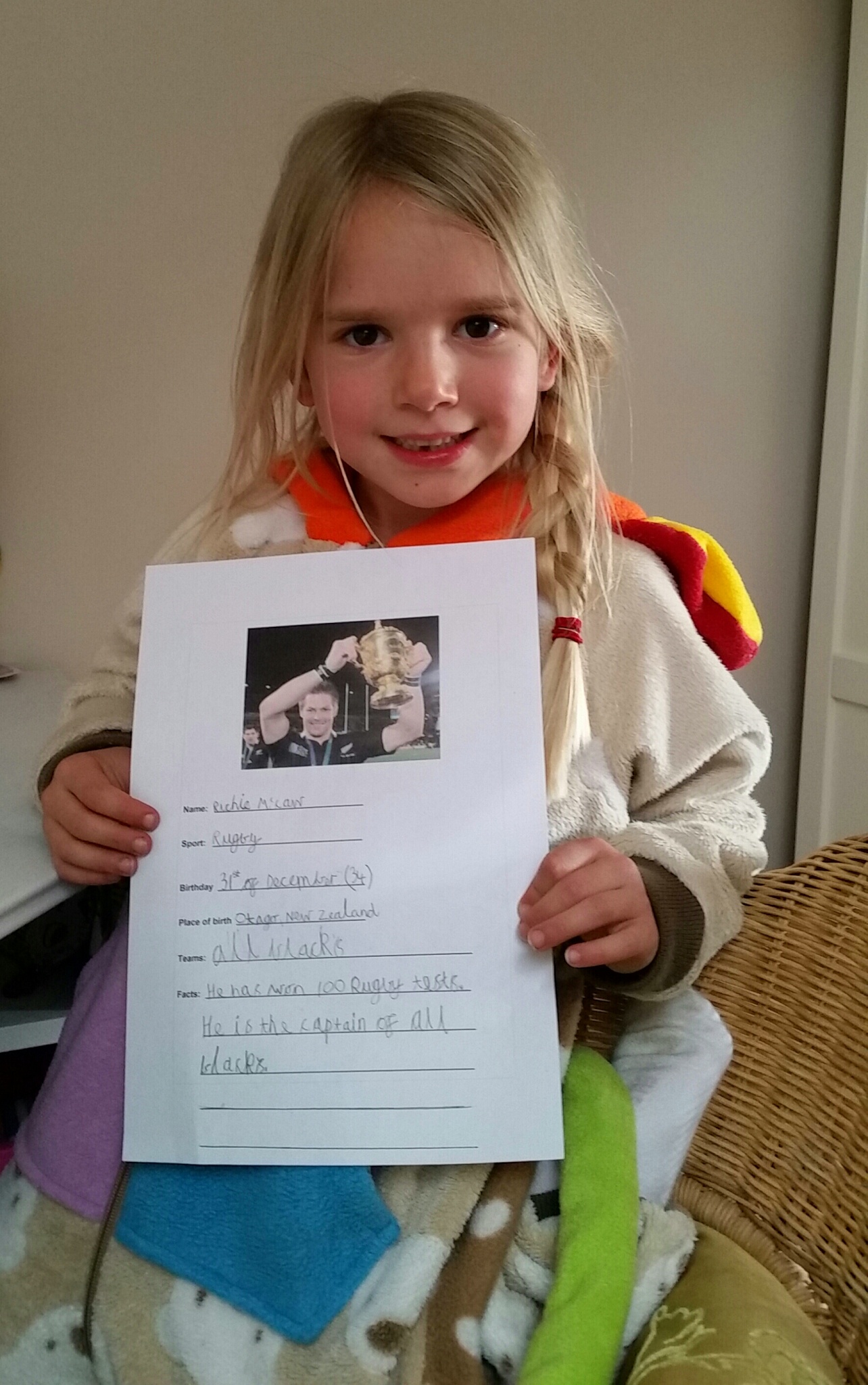 Pick a famous sports person, then tell the class about them. I had someone that no one else did, Richie McCaw, and was very proud of her talk.