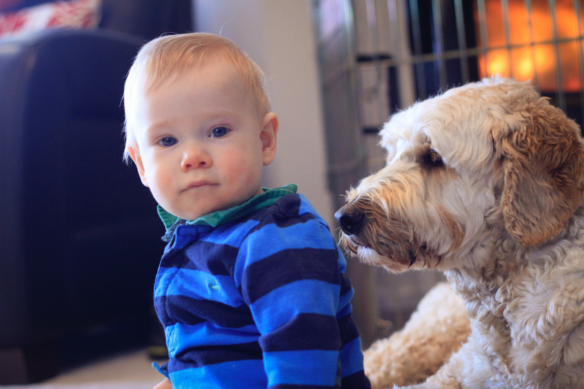 She doesn’t seem quite so keen on having her hair on her muzzle pulled……… but is happy to share the bonus bits of toast dropped from the high chair in the mornings!!