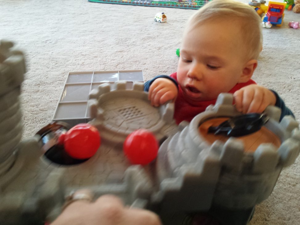 LJ is fascinated with the castle. He loves the canons, the trapdoors and the Knights but the biggest challenge is he can’t figure how the balls get from the top to bottom. Every time he throws one onto the top they roll out the bottom of the tower!