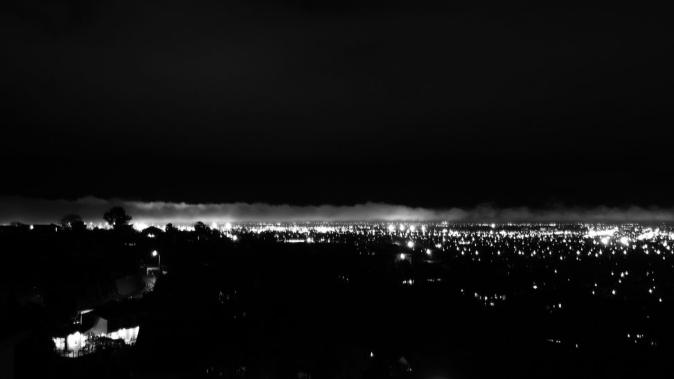 A cold, foggy night in the west of the city.