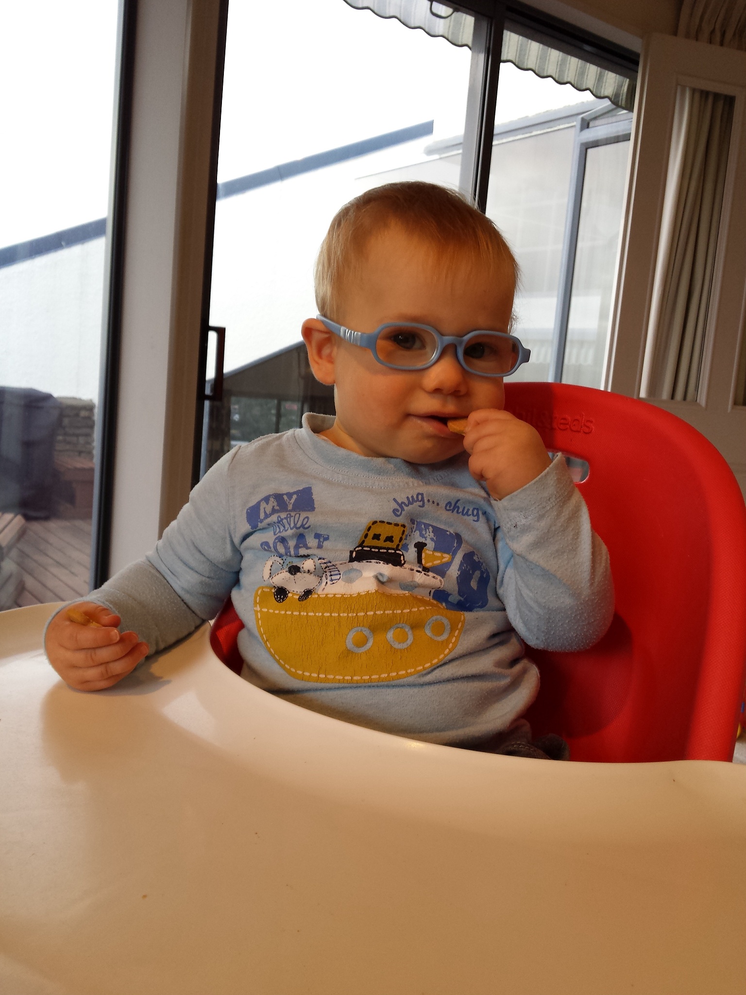 Today LJ got his new glasses. They only just fit him, so he is going to have to grow into them.