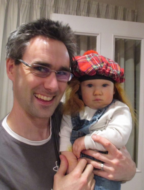 His Dad found a silly wig when unpacking their boxes which arrived by sea from Edinburgh yesterday.