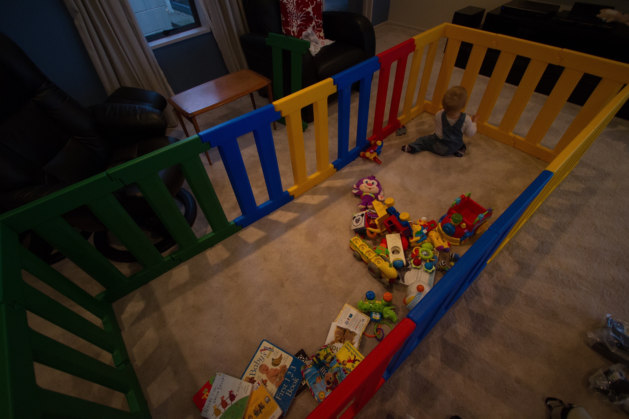 Today with all the activity of unpacking the boxes, we decided to set up a play pen for LJ’s safety. With him crawling everywhere it was only going to be a matter of time before someone tripped over him or he climbed into something he shouldn’t.