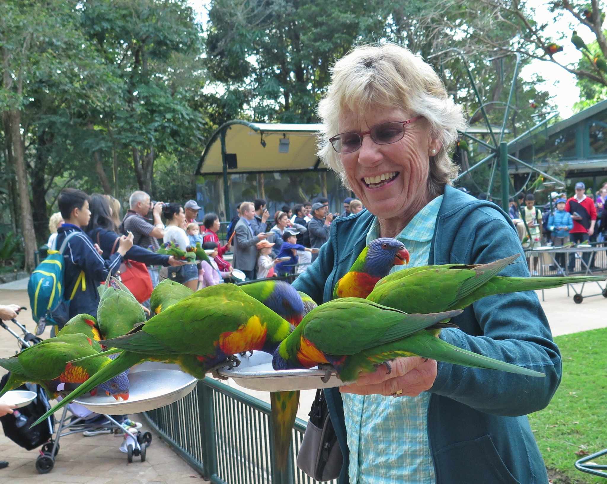G was very popular with the lorikeet’s at Currumbin today. Her feeding tray seemed to be much tastier and more appealing than ours.