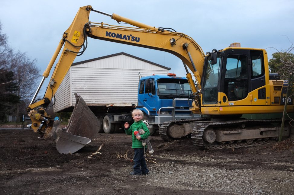 When we arrived at pre-school today, we were met by the most amazing sight – there was a digger and a house (well a small sleep out) on a truck! It was every boys dream!