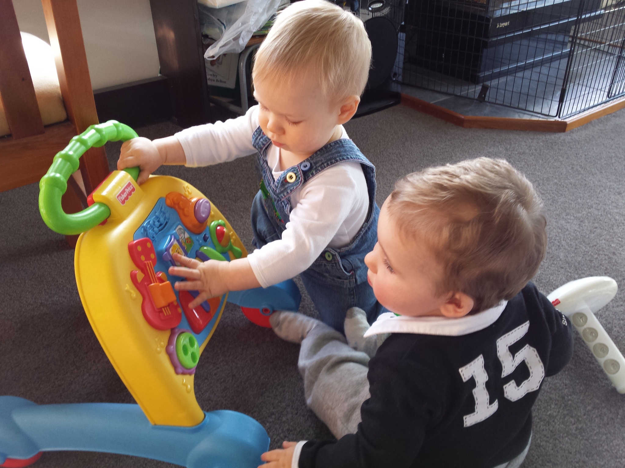 Today LJ had a play date with his friend L. It was lovely to watch the two of them interacting with each and crawling around playing with all the different toys.