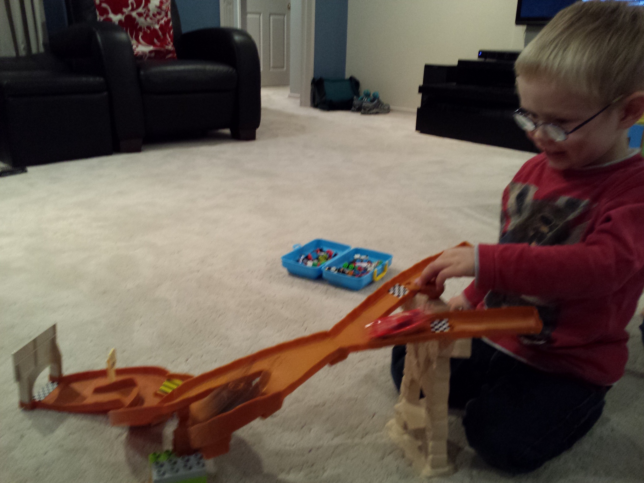 He was rather excited about this find and spent the rest of the day racing his Lightning McQueen and Matter down their race track.