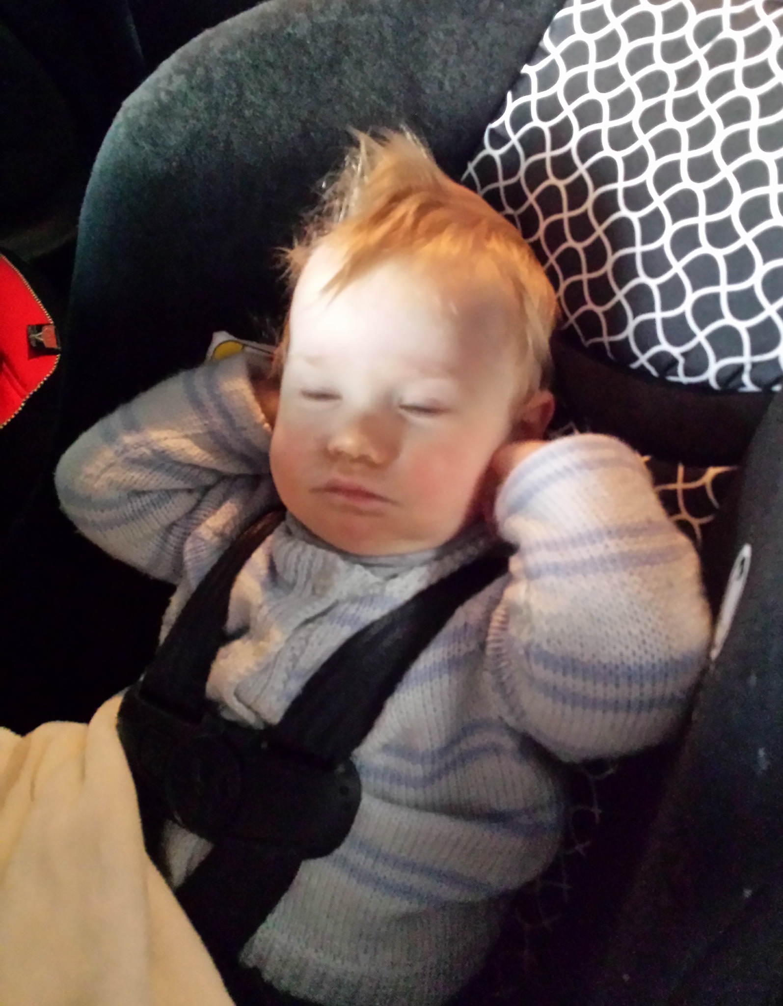 One side effect from having a good nap in the car is the “car seat Mohawk”.