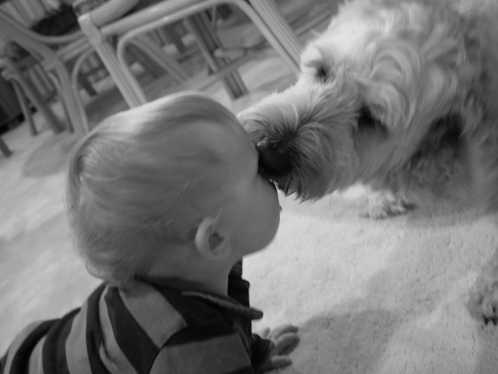 Molly loves LJ and is forever getting told to stop licking him. However LJ loves molly and chases her everywhere, pulls her coat and her tail, and is not the slightest bit concerned about the licks. We have decided they are both as bad as each other so we’re not sure who to growl at first.