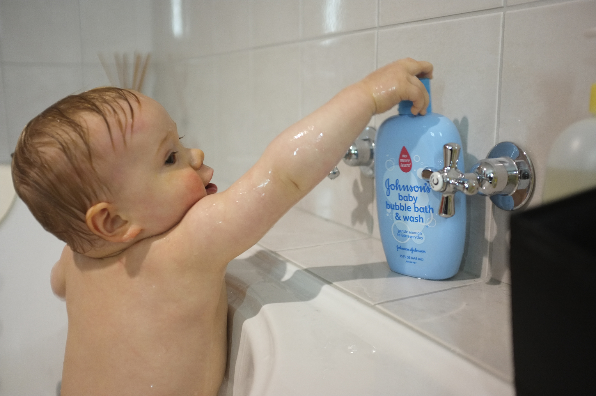 LJ loves his bath time. Splashing about and occasionally even disappearing under the water only to pop back up again giggling.