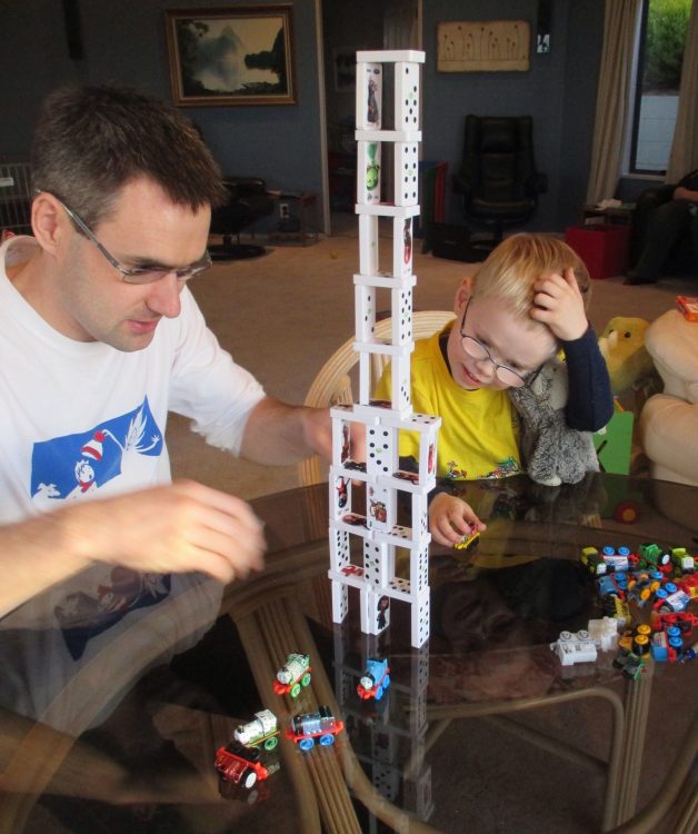 Tonight S2 and C built towers and then the challenge was to drive the Thomas train minis through the bottom (from ever- increasing distances) without knocking the tower down.