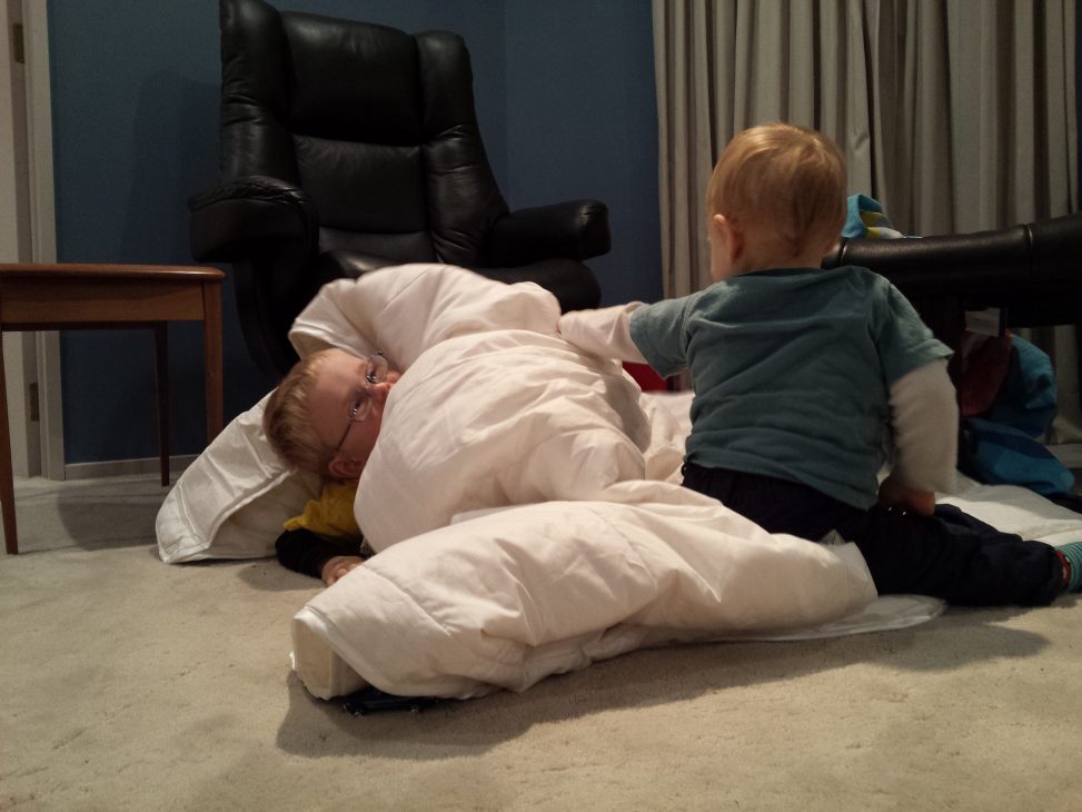 The perfect peek-a-boo game – one hides in the duvet and the other one finds him.