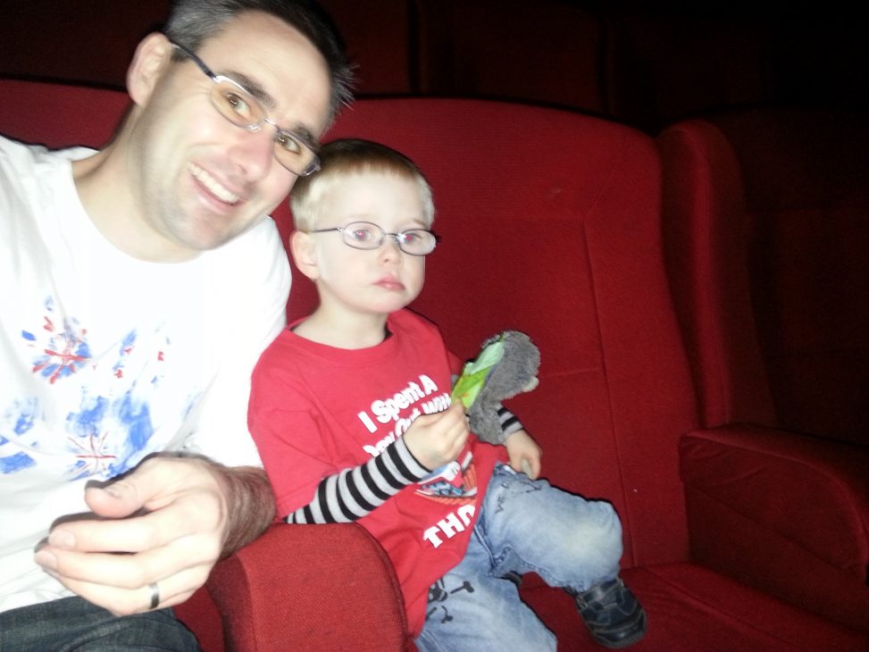 This morning S2 took CJ to his first movie at the cinema – Thomas the tank Engine: Sodor’s legend of the lost treasure.