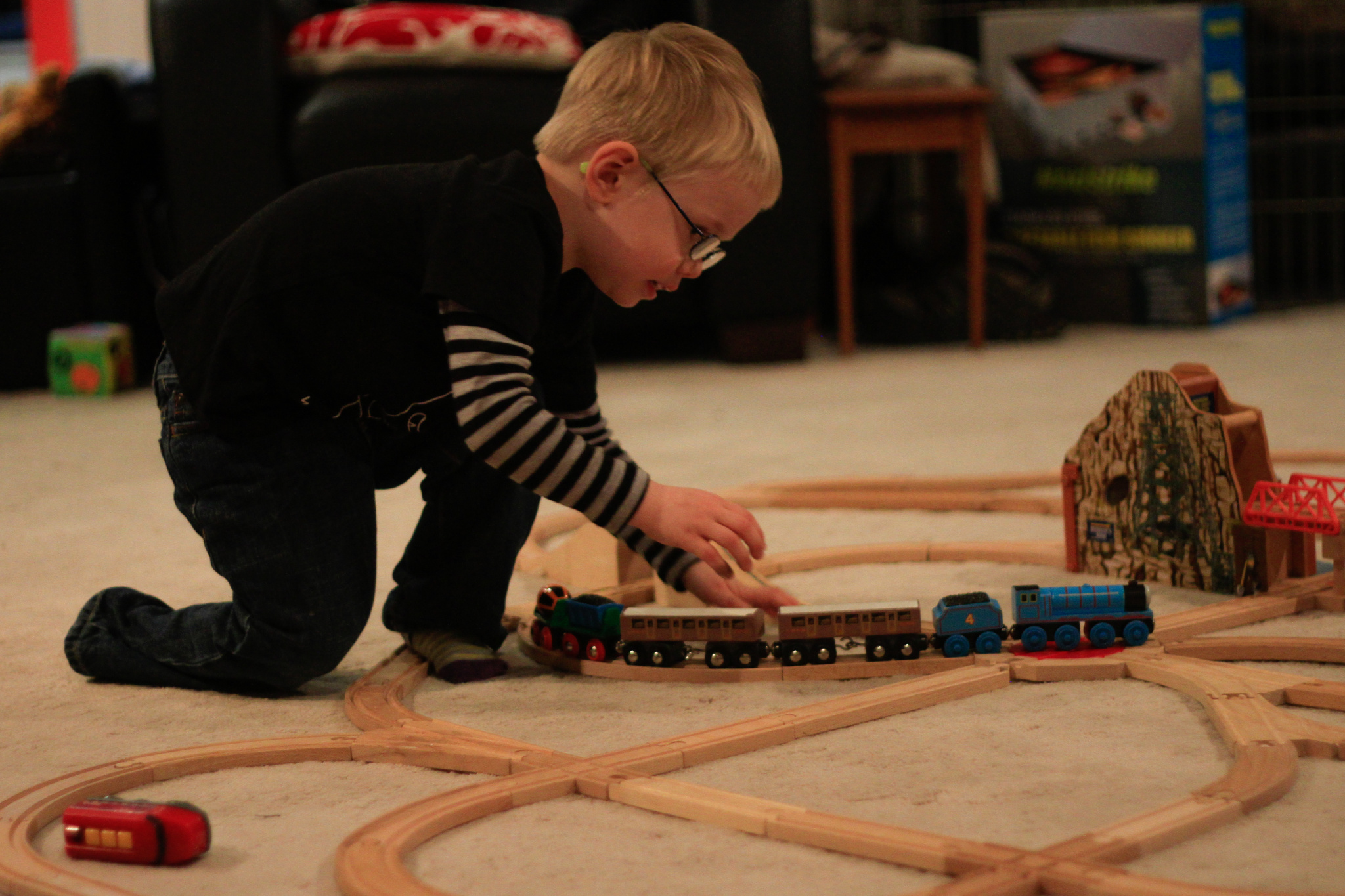 CJ loves his trains and spends hours making new tracks and organising the trains on it.