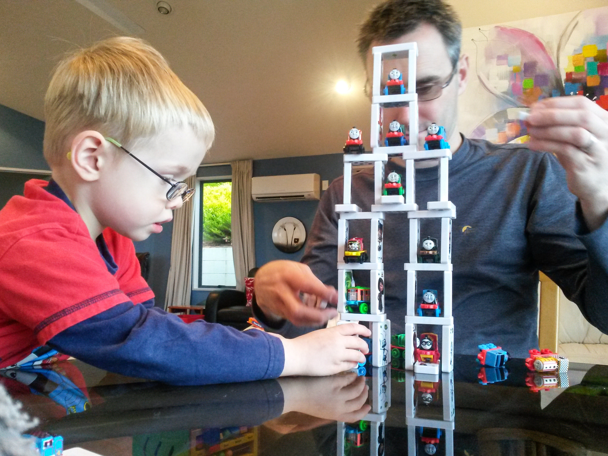 CJ loves his collection of minis and dominoes, so tonight he and s2 were very creative with them both. A lot of planning and careful building …….. and then a big crash as one of the minis pushed over the tower.