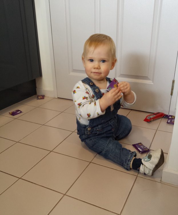 After the trip to the doctors it was home for some lunch before dropping CJ at preschool. We then headed straight to the supermarket, where we picked up some up domino’s – which before they were even opened, kept LJ entertained for ages.