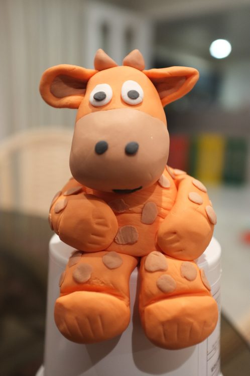 A icing version of his giraffe, Wellington.