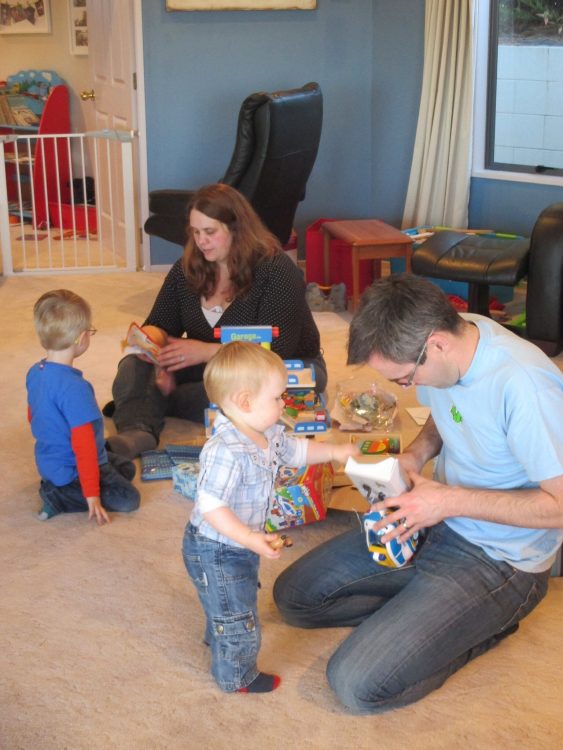 But after a crash course from his big bro, and with some help from Mum and Dad, he really got into tearing the paper off and investigating the contents!