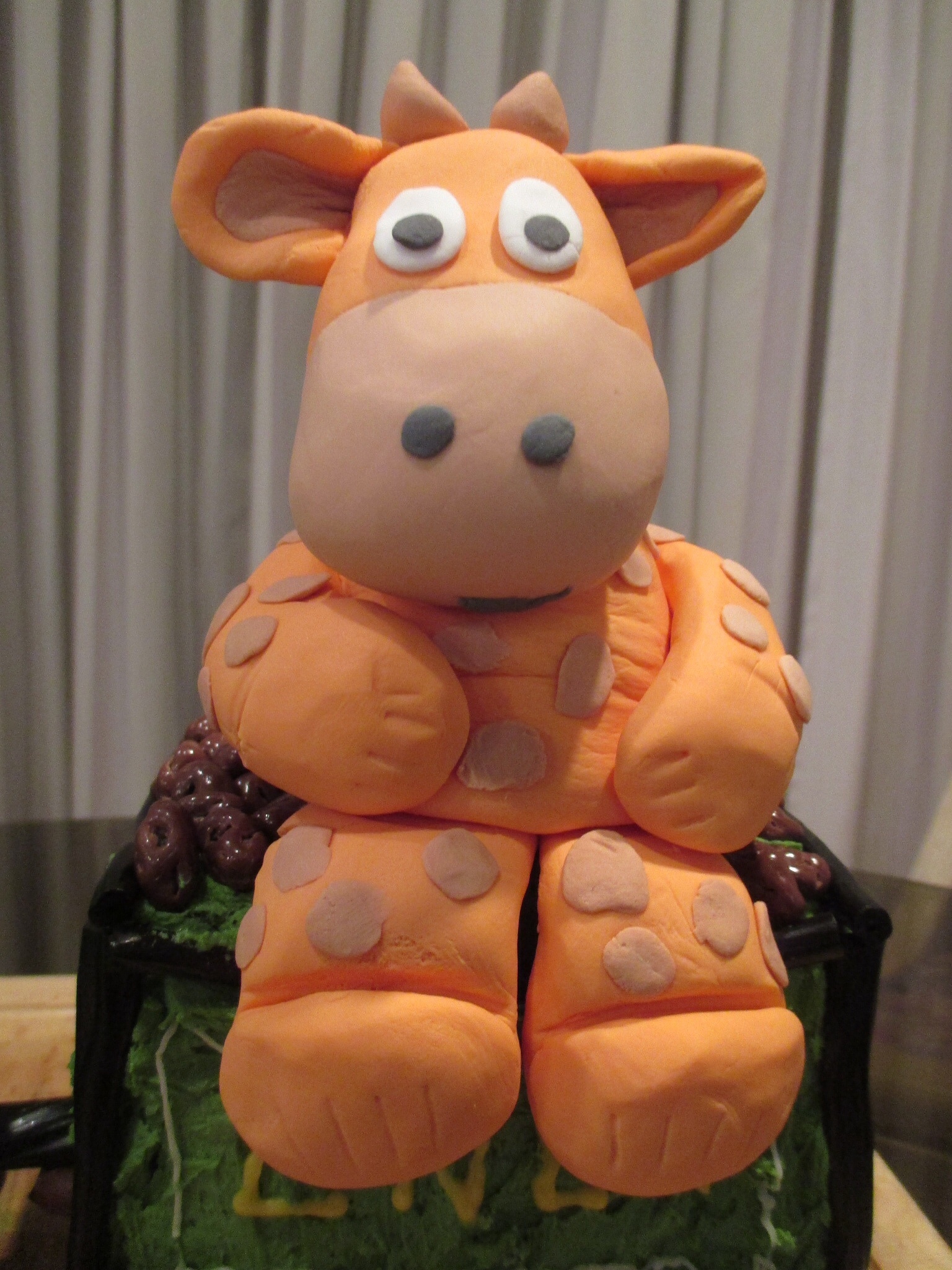 It was an amazing Flying Scotsman (train) with a carriage on behind and this giraffe in the carriage.