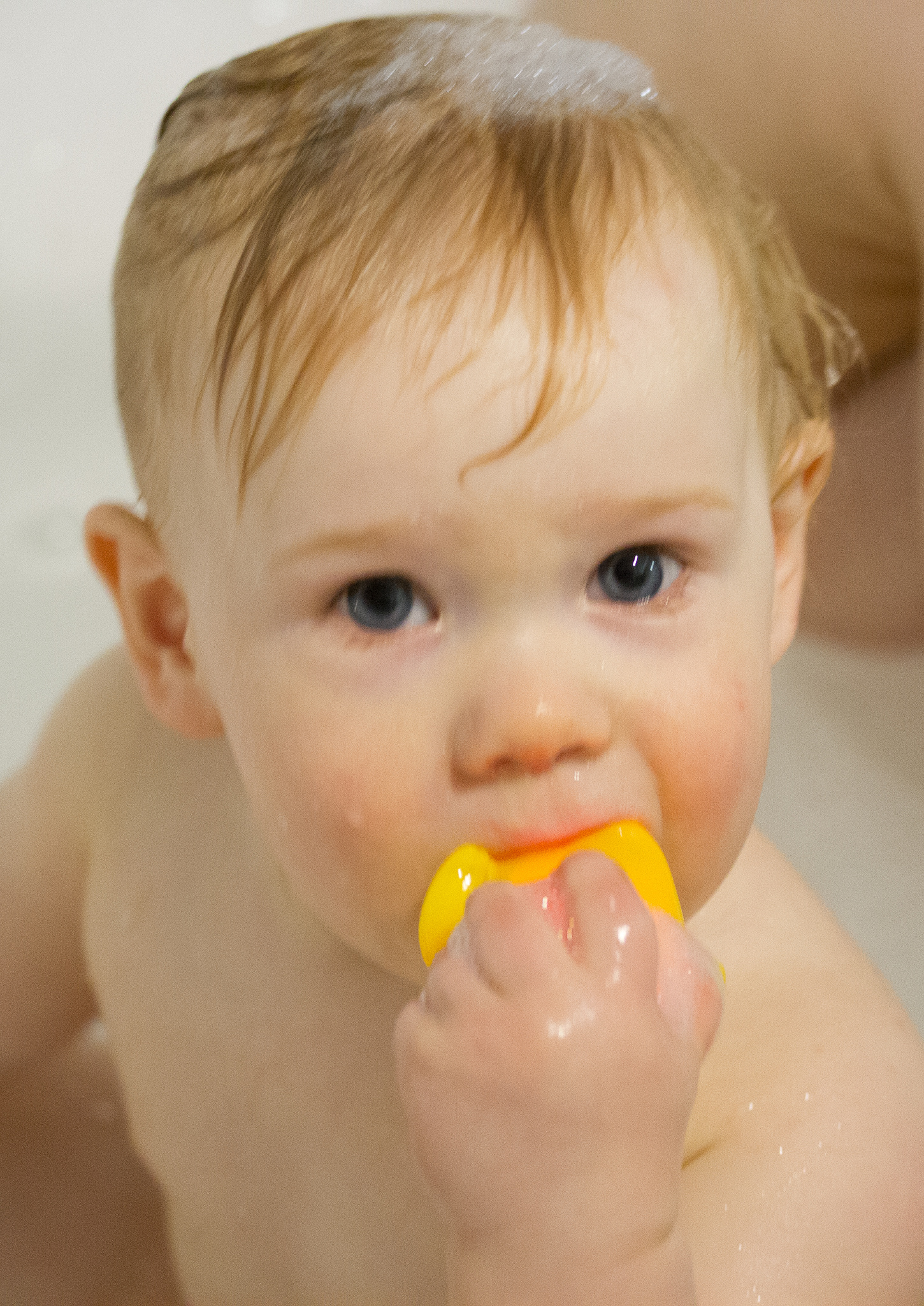 LJ loves the bath so much.