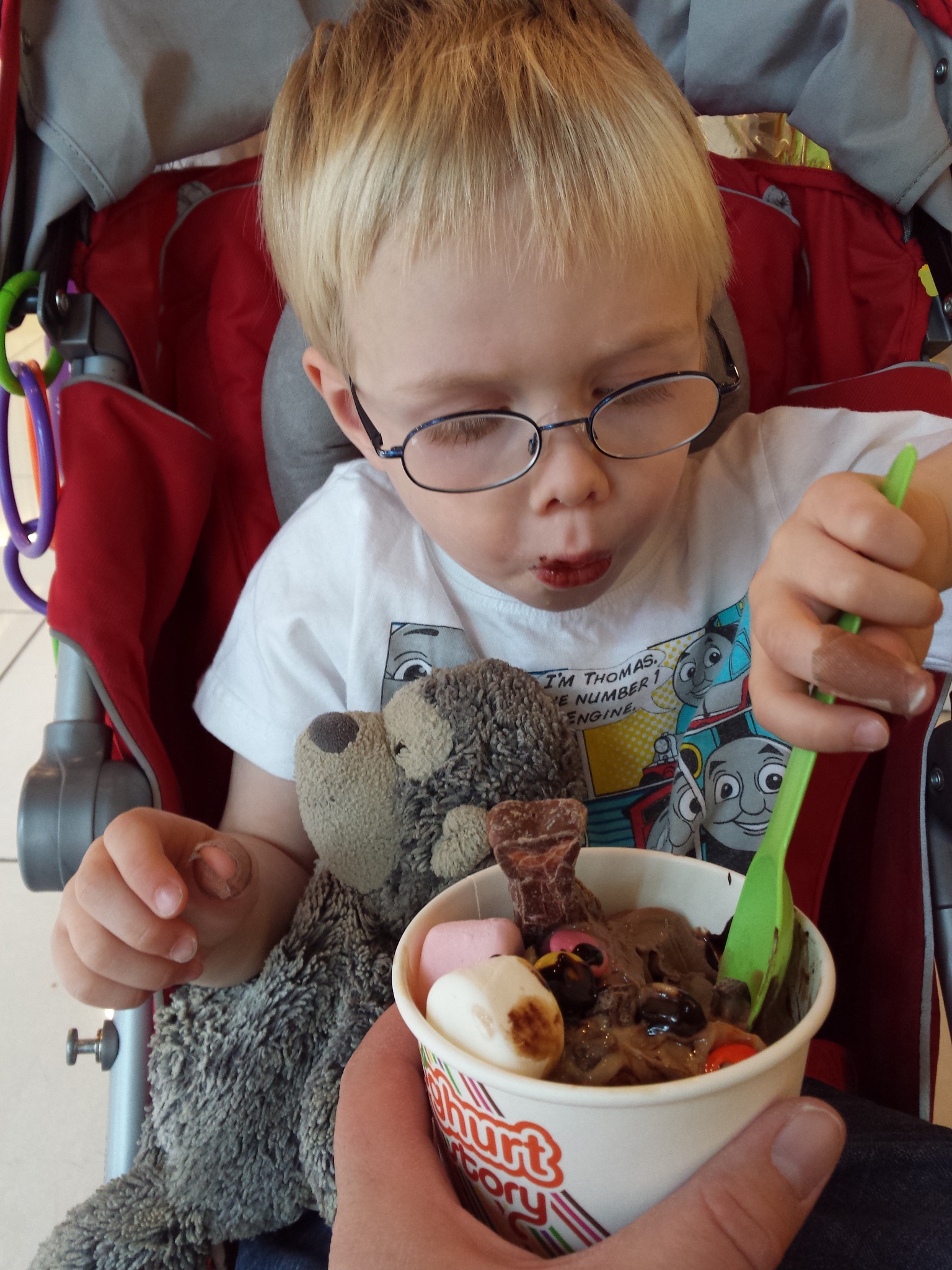 And then we headed to Yoghurt Story for afternoon tea. We shared a small sundae, with CJ picking most of the toppings!