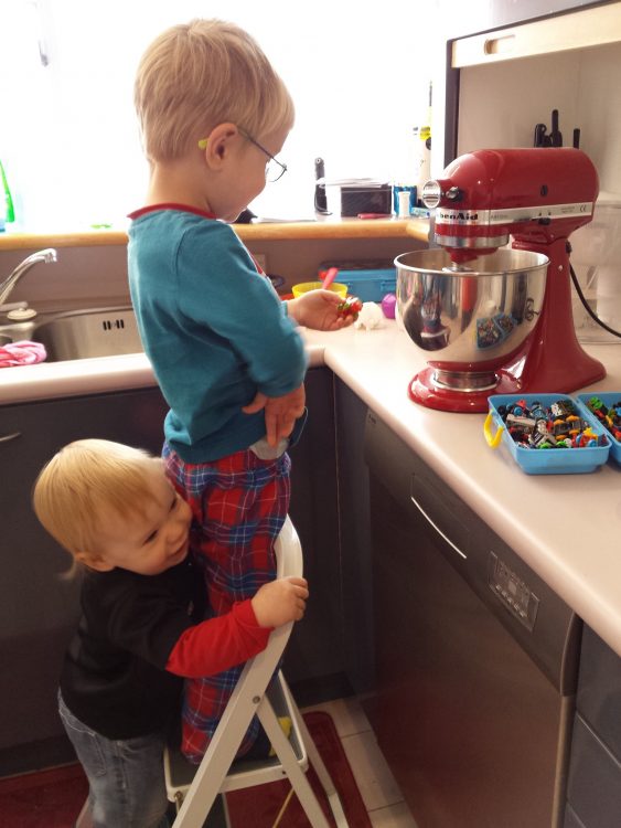 S2 had to go to work in the morning, so while we waited for him to finish at work, the boys and I quickly made a belated surprise birthday cake for him.