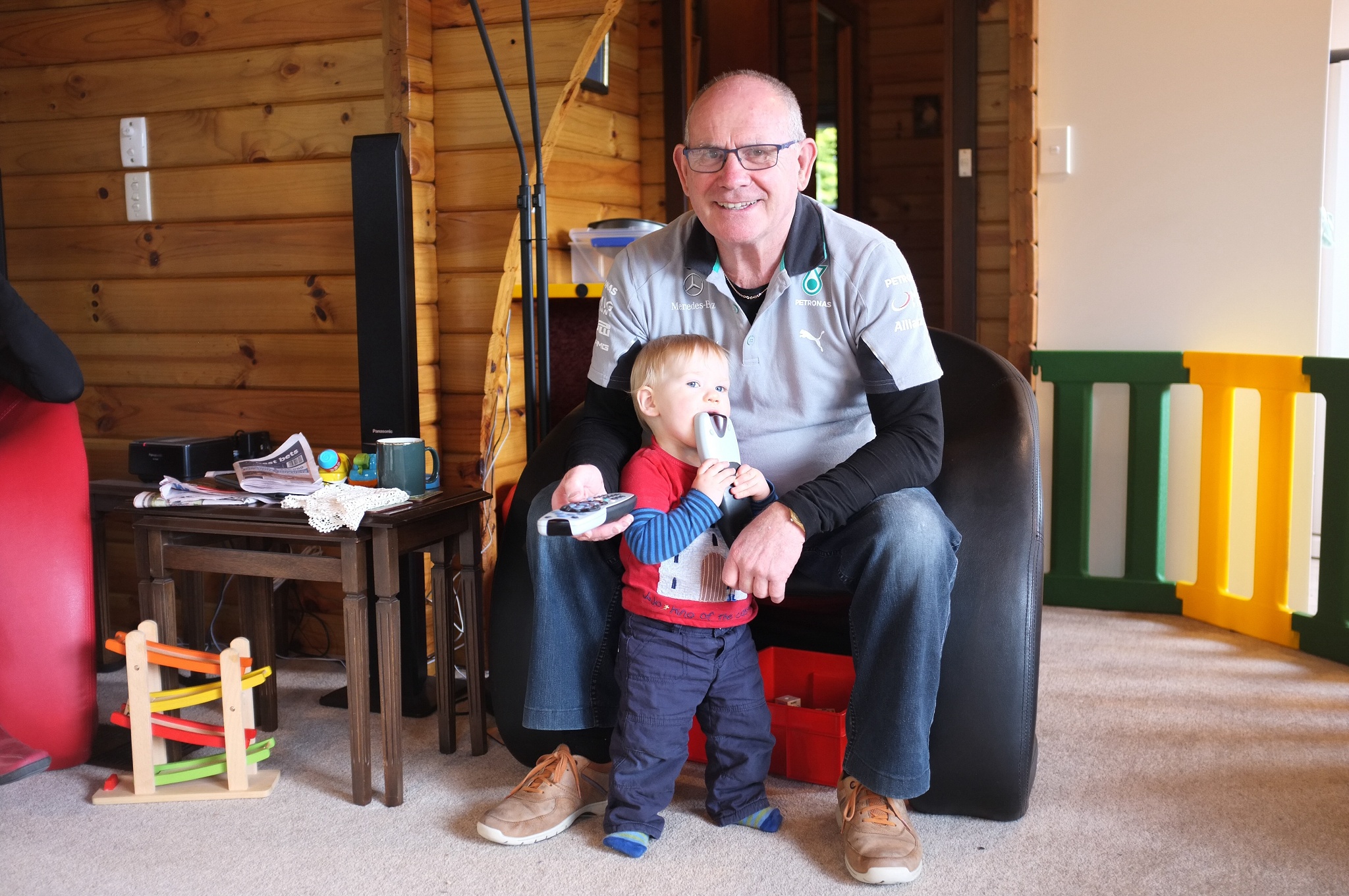 LJ loves remotes, so while sitting with GD (watching the races) GD gave him a remote to “play” with . The only problem, he had given LJ the working remote, which LJ wasted no time in demonstrating!