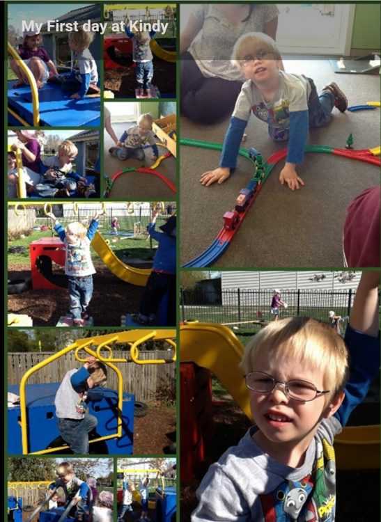 The staff made this lovely collage of his first day, showing everything that he did.