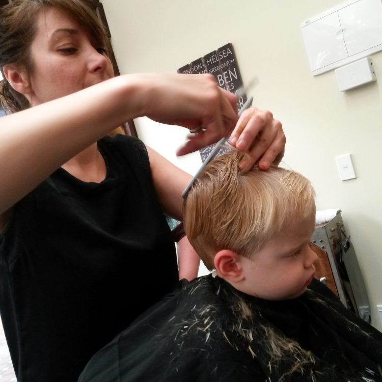 CJ sat so very still ……….. and then looked so very grown up with his smart new haircut.