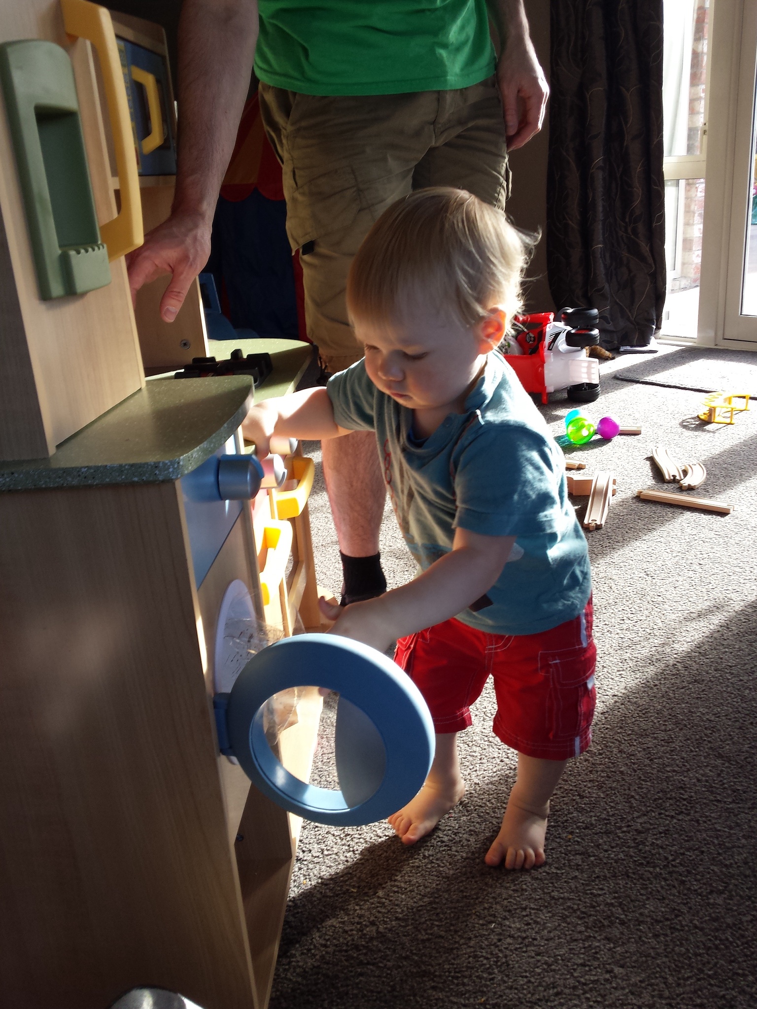 As we are still finding toys that CJ had forgotten about and that LJ has never seen before – it was pretty easy to keep them entertained. LJ has been especially taken with the kitchen (which is still one of CJ’s favourites). Today he learned how to load the washing machine.