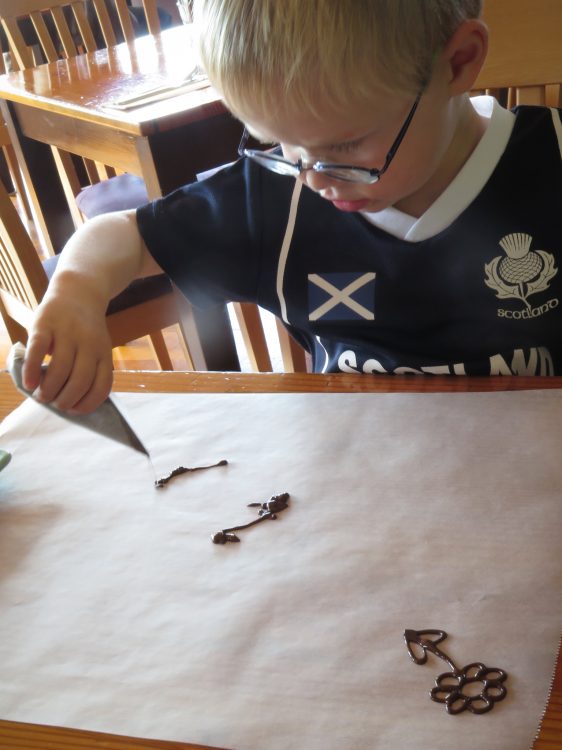 After a much needed plate of scrambled eggs CJ was delighted when the staff gave him a big sheet of paper and a “chocolate pencil” to draw his own picture. What a brilliant idea to keep the kids quiet and content 🙂