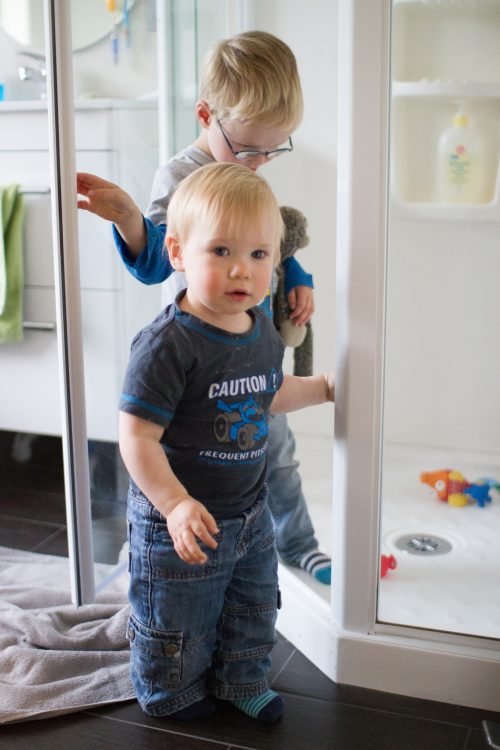 If we loose him, the chances are he’s either in the bathroom or playing with the water table or a bucket of water outside.