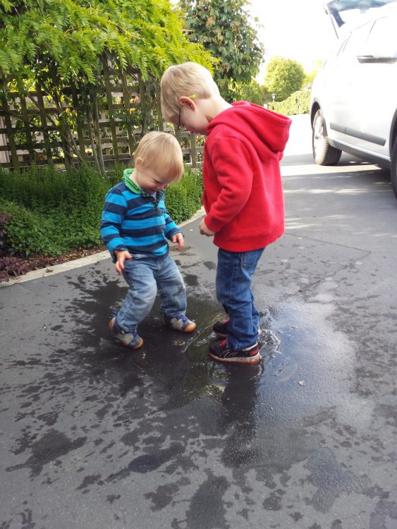 It’s amazing how one small puddle could keep two little boys amused for so long…
