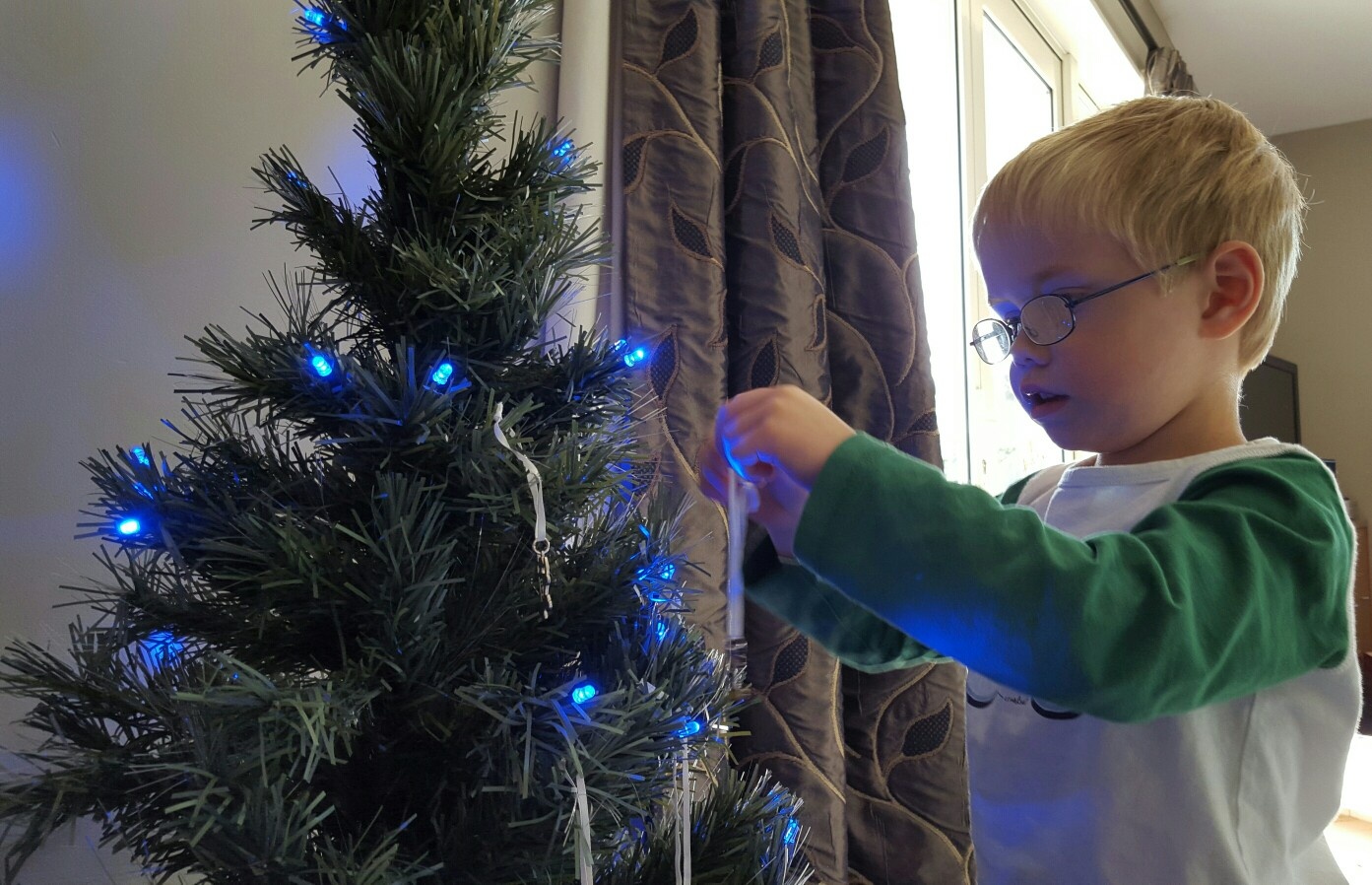 It didn’t take long before he was very busy placing decorations all over the tree. And once most of them where up, he stepped back and stated “my tree looks fantastic”.
