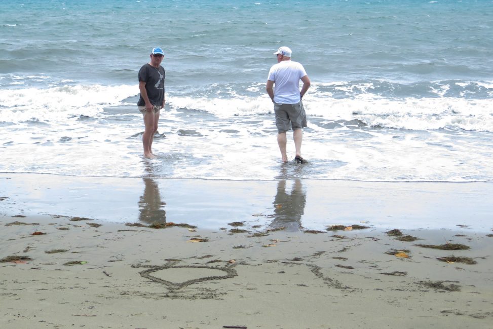 Warm but windy and the sea is very rough, so there was total agreement that the pool would be a good option.