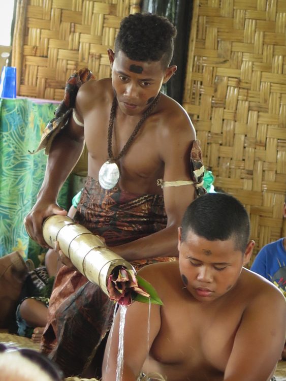 Today we travelled up the Navua River on long boats (see extra photo) to a waterfall and then back to a Fijian village for a Lovo, a Kava ceremony and entertainment from the villagers. The children at the village kindergarten also sang for us and they were so gorgeous – see photo 🙂