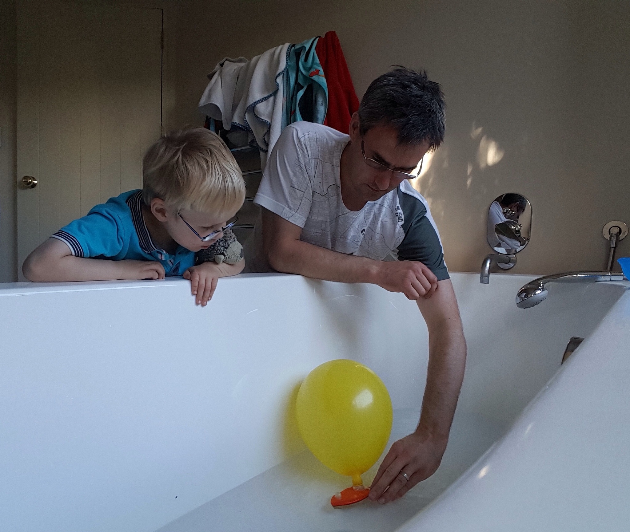 In the advent calendar today CJ received a balloon boat. Needless to say we had to try it out straight away.